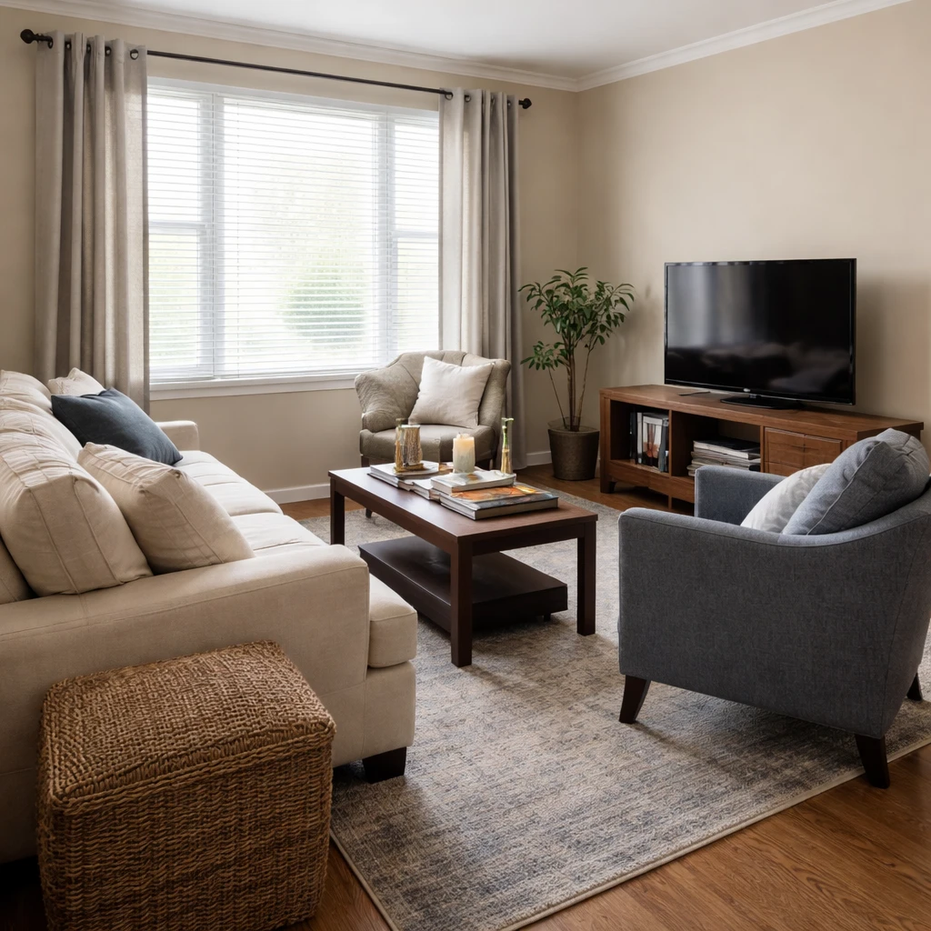 Upload your room photo to test furniture directions that improve flow, balance, and everyday function.