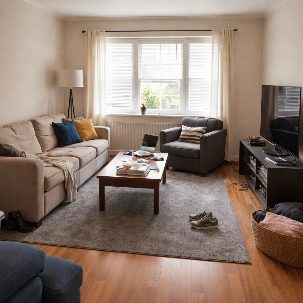 Before buying anything, measure your room and sketch the layout on paper or use painter's tape to mark furniture footprints on the floor. This lets you test circulation and proportions before spending money. Consider sight lines: when you enter the room, what do you see? The back of a sofa feels unwelcoming. Every seating position should have a clear line to the focal point (TV, fireplace, window) without requiring awkward neck turning. Finally, ensure every seating spot has a nearby surface for drinks and personal items.